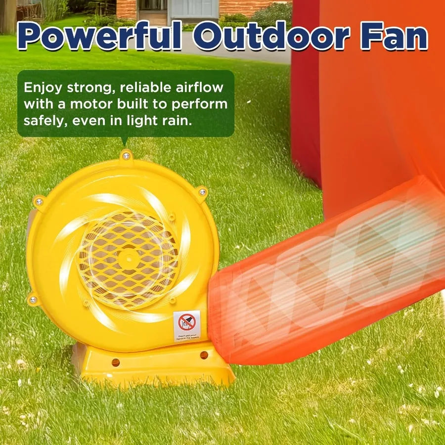 Quick Setup with a Powerful Outdoor Blower: Equipped with an upgraded high-performance blower, this inflatable inflates in just minutes to its full size. The powerful blower ensures the castle stays firm, upright, and perfectly shaped, even in outdoor conditions. Setting it up is effortless with the included stakes, tethers, and UL-certified adapter for safety. Enjoy a hassle-free setup and a durable display that lasts all season.
