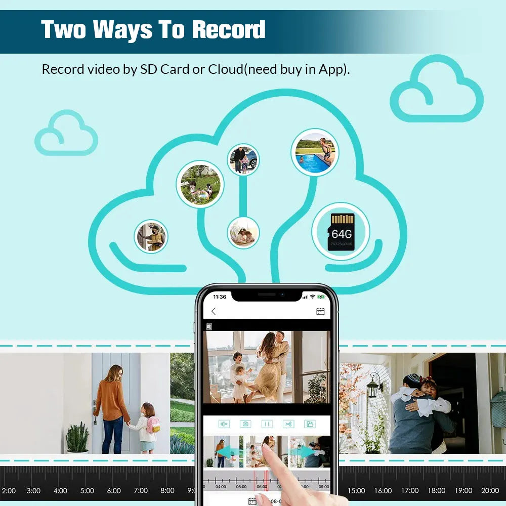 9MP 4K IP Camera Dual Lens WiFi PTZ Panoramic Surveillance blends high-resolution imaging with intelligent panoramic coverage to secure homes and small businesses. Featuring two wide-angle lenses and smooth PTZ control, it captures more of every scene with crisp detail. Connects via 2.4 GHz WiFi for quick wireless setup, and supports motion detection, instant alerts, and two-way audio for real-time communication.