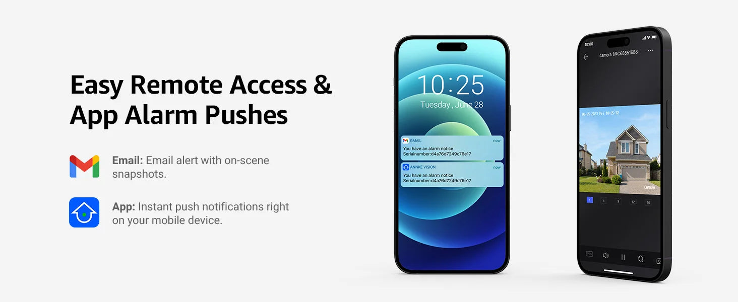 - Motion Detection & Local Alarm detects movement and triggers a local alarm to deter intruders and alert you promptly.