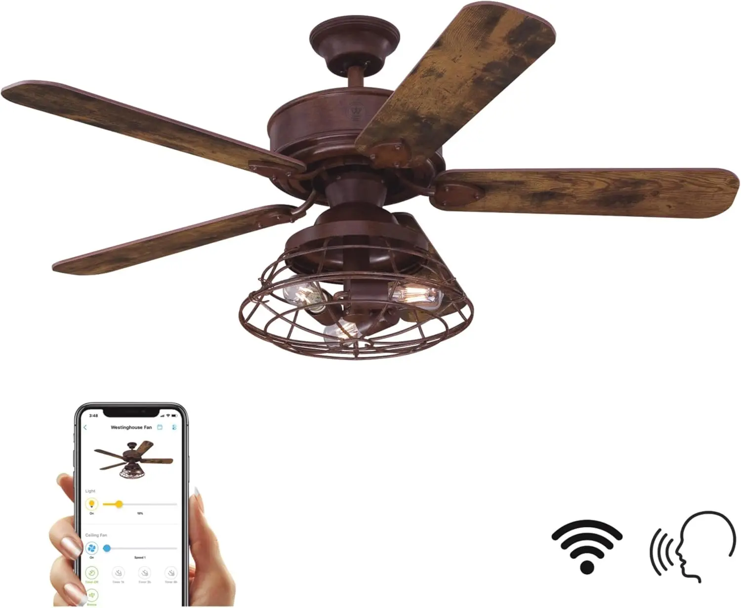 "Barnett 48-Inch Barnwood LED Ceiling Fan Light Kit with Dimmable Cage Shade and Remote Control"