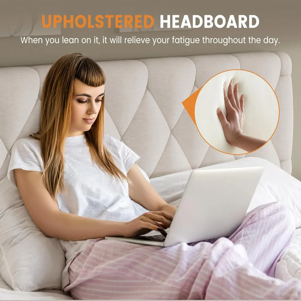- 【Comfortable & Elegant Design】 Elevate your bedroom aesthetics with our king bed frame. This king platform bed frame is padded with high-density foam, offering a soft and breathable backrest adorned with decorative details that add sophistication and a contemporary touch.