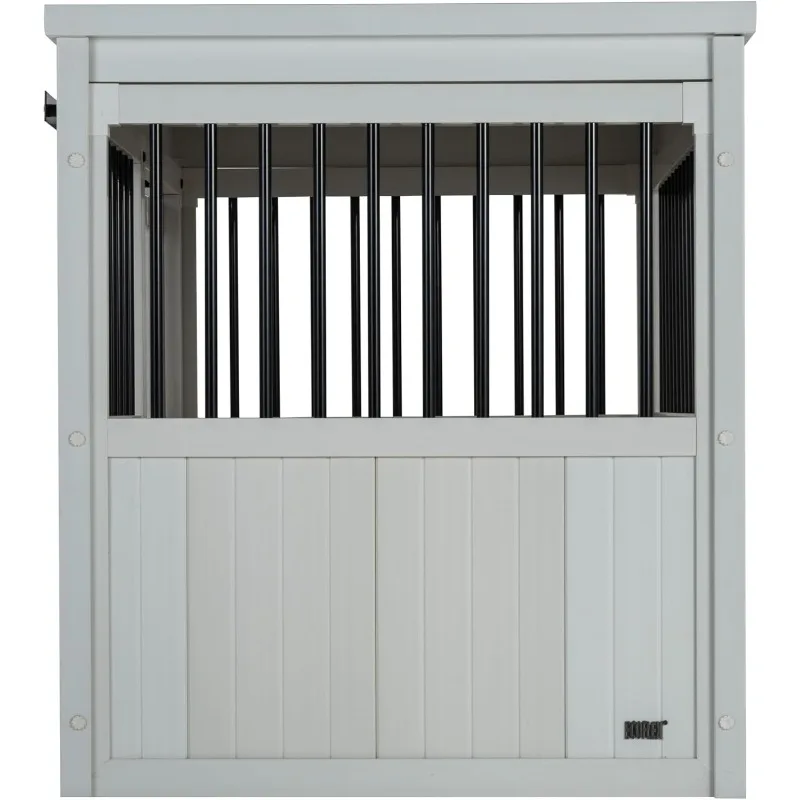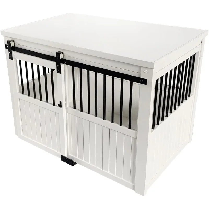 ECOFLEX® Homestead Sliding Barn Door Furniture Style Dog Crate - Antique White, Large (EHDBC15-04L) - Stylish, Dura