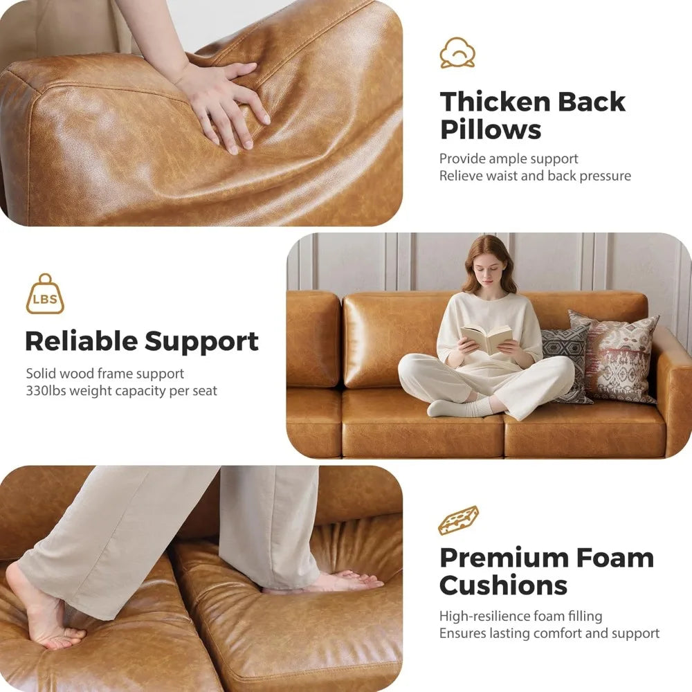 Faux Leather Modular Sectional Sofa, 91.5" L Shaped Couch Set for Living Room, 3-Seater Comfy Cloud