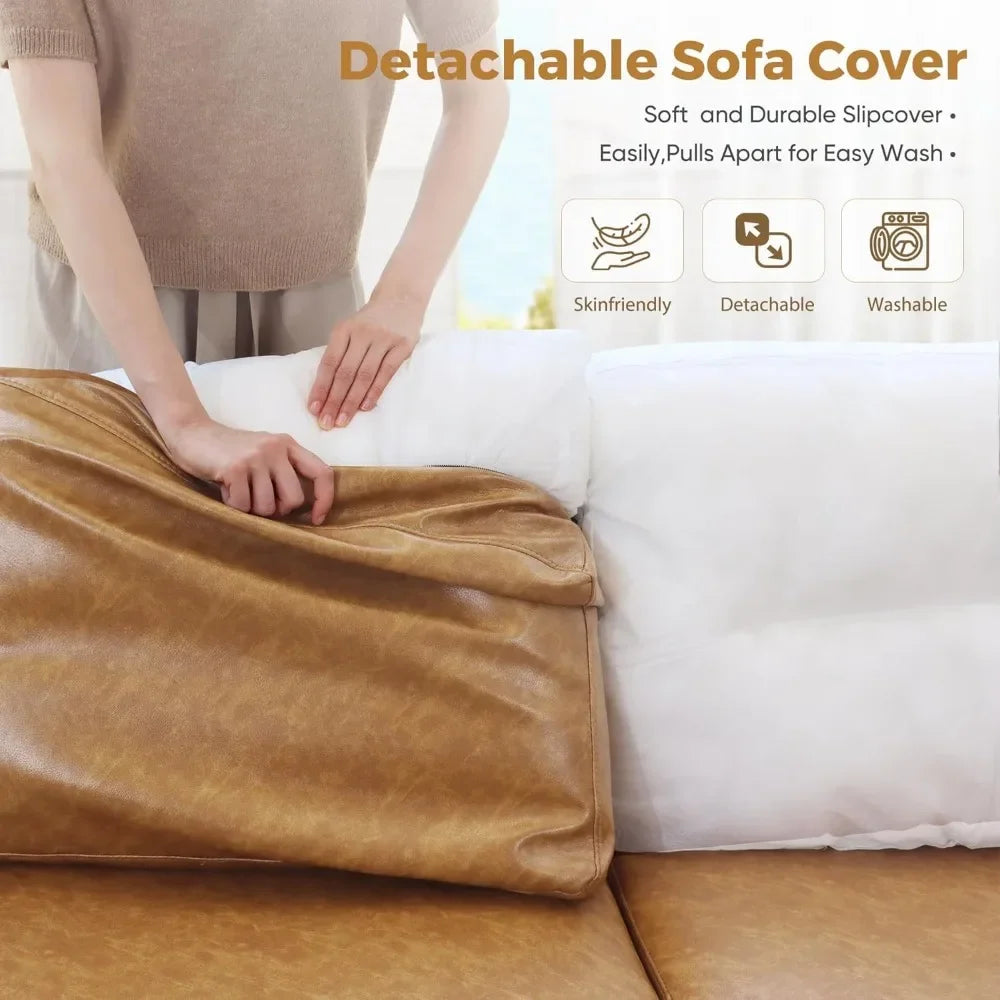 - π Effortless-Clean Faux Leather Sofa: Waterproof and stain-resistant faux leather stays spotless. Wipe spills clean in 10 seconds with a damp cloth. The scratch-resistant textured surface feels soft and smooth, maintaining a stylish look even with pets and kids.