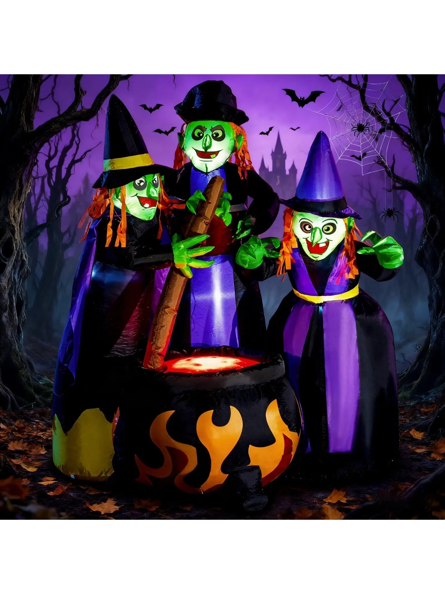 Three witches are cooking soup in a big flaming vat.It is very eye-catching in the lawn in the yard, full of Halloween atmosphere.It will become a special holiday check-in point.