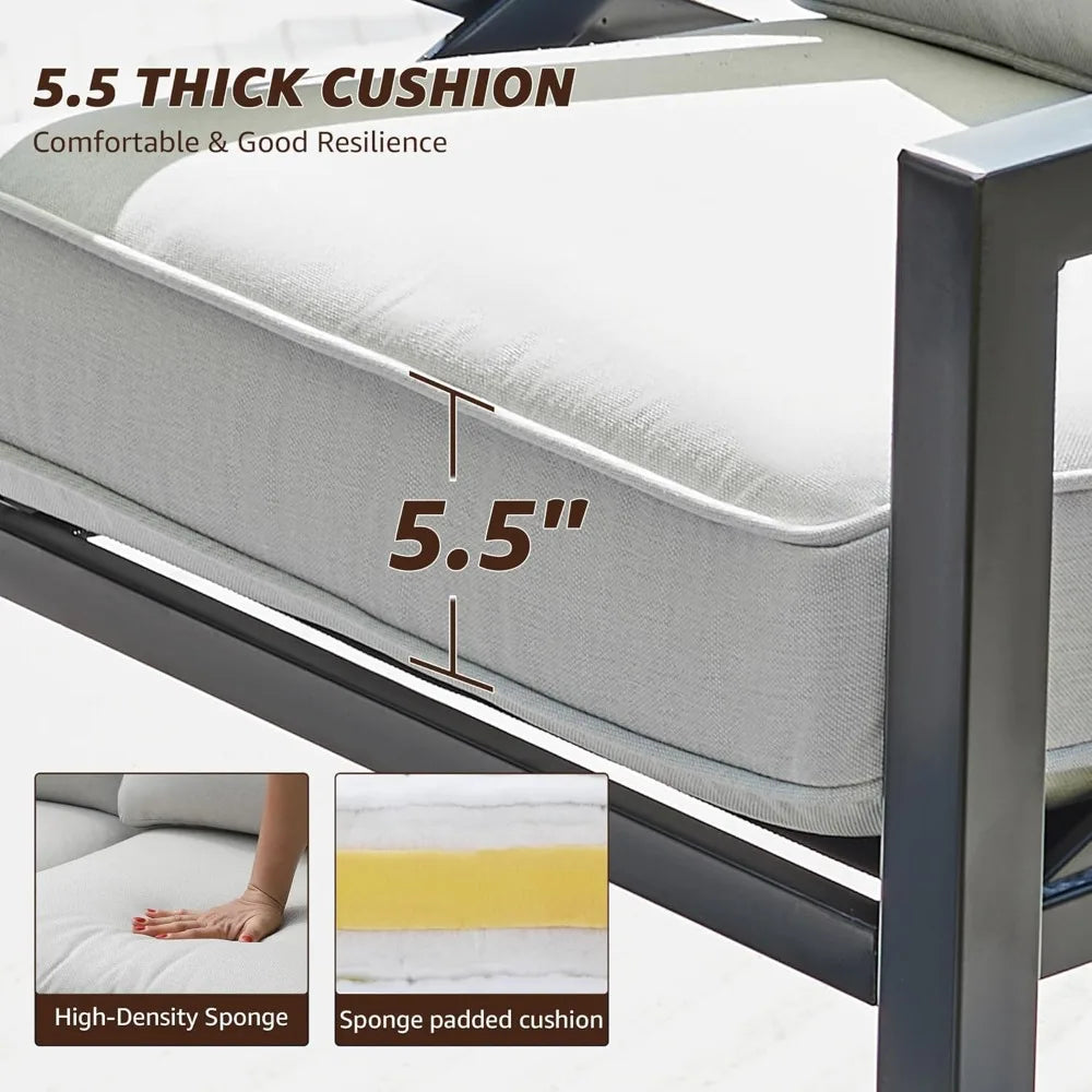 5.5" OLEFIN Cushion, Next-Level Comfort: Patio outdoor sectional set has 6.5" thick cushions that are upholstered by water-repellent and UV-protective Olefin fabric for ergonomic optimal comfort. Outdoor patio furniture set cushions balance well with sturdy Frame. Thick Cushions will maintain shape easily after use. Every cover of cushion has zipper for removing and cleaning easily.