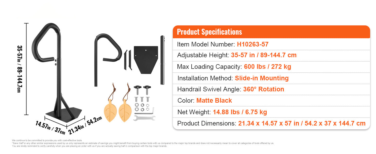 Height Adjustable:Customize the handrail height between 35" and 57" to accommodate various tub sizes and personal preferences.