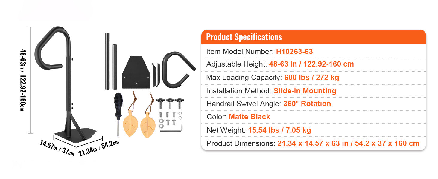 600LBS Weight Capacity:The handrail supports up to 600 lbs, ensuring robust stability and minimizing the risk of slipping.
