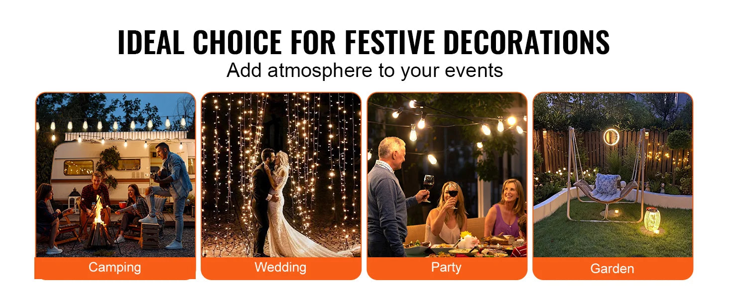 From holiday decorations to wedding setups and backyard parties, these outdoor string lights are perfect for creating a magical atmosphere. Their soft, warm glow adds a special touch to gardens, patios, and more, making every event memorable.