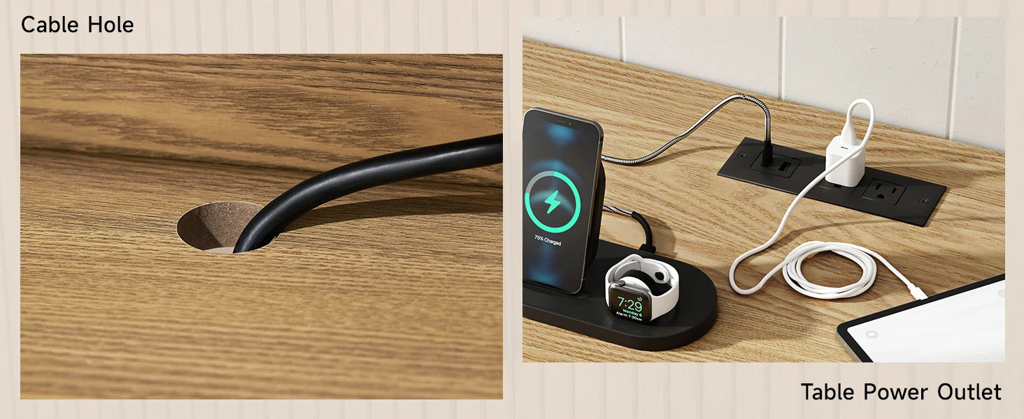 - Built-in power outlet powers your TV, game consoles, and streaming devices without clutter.