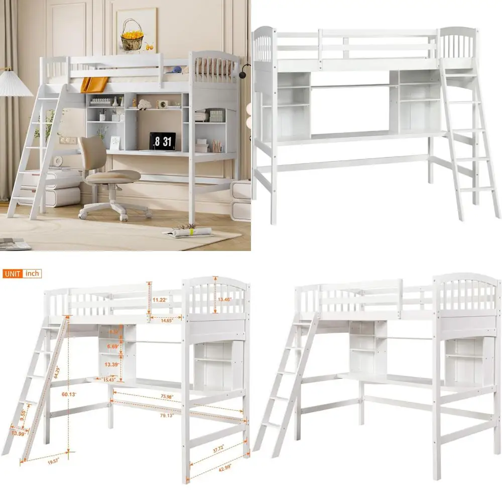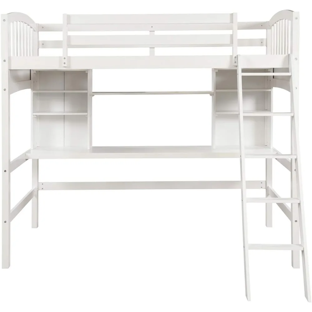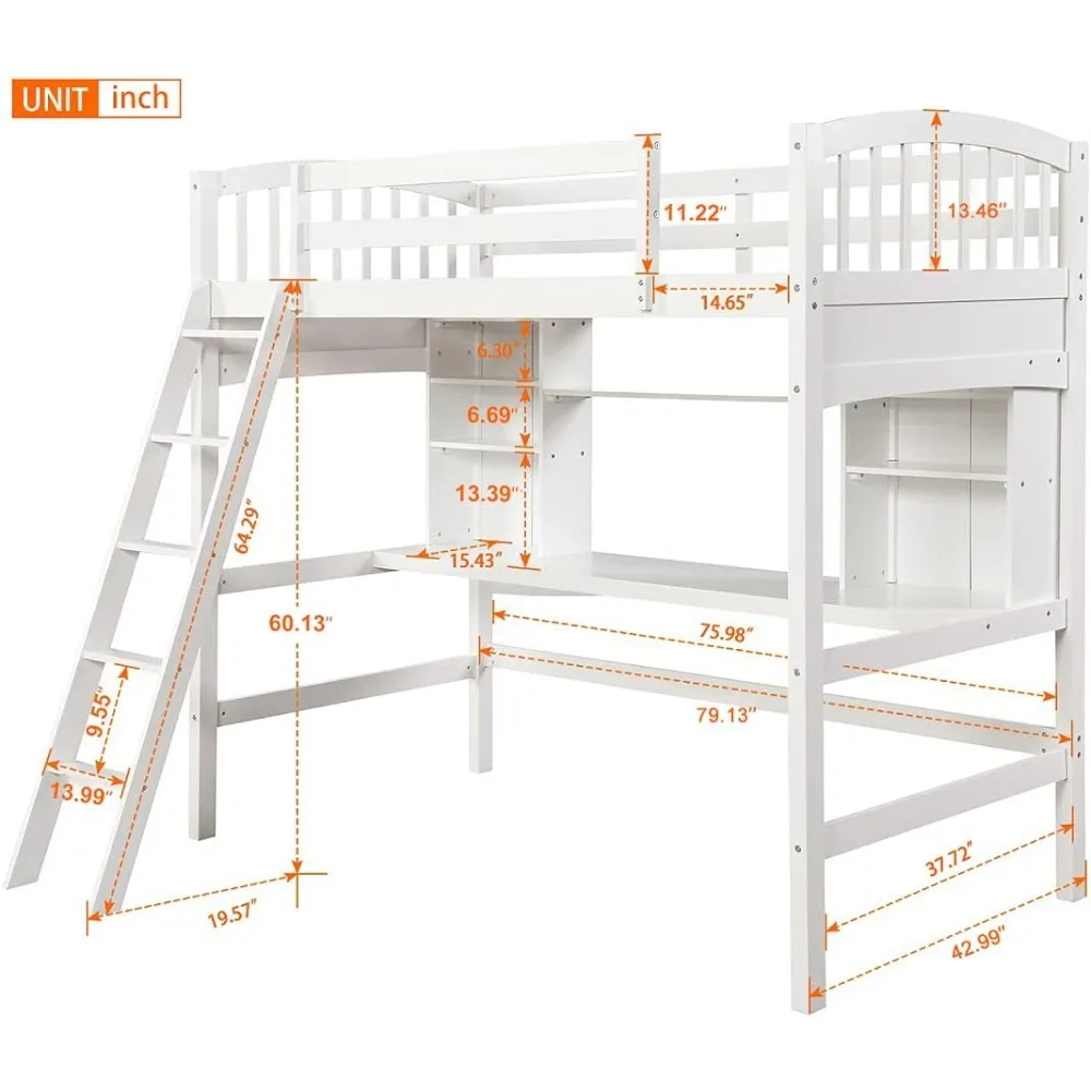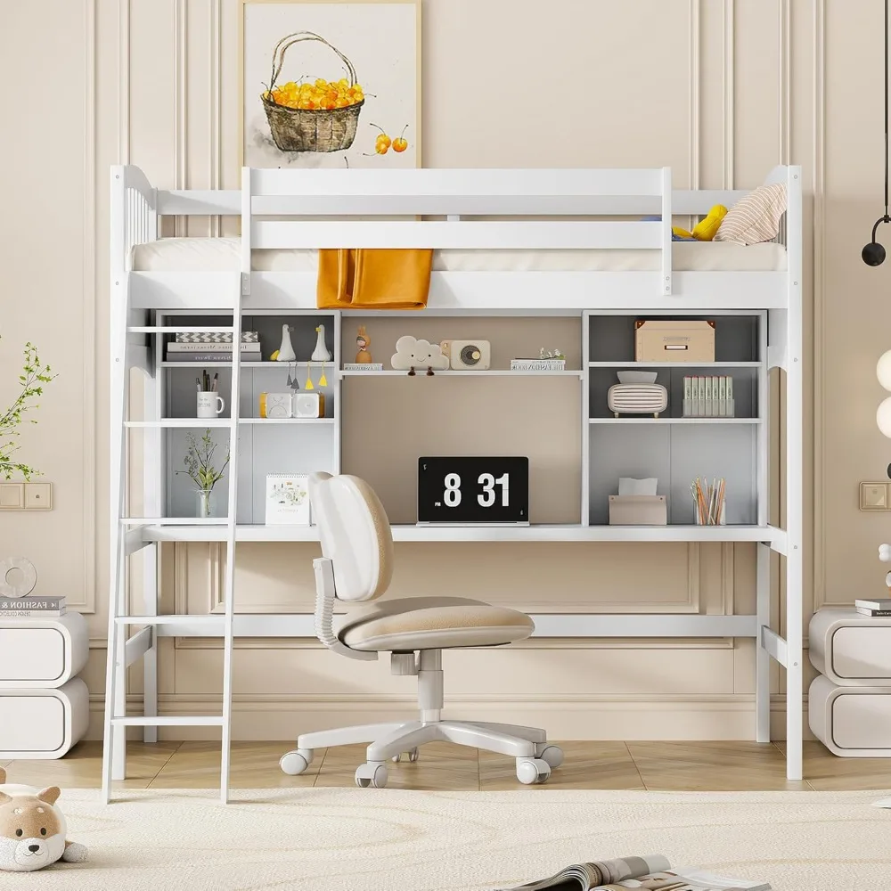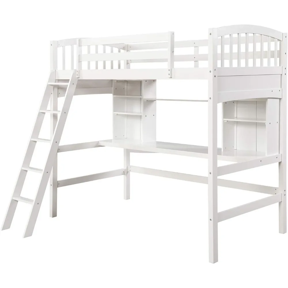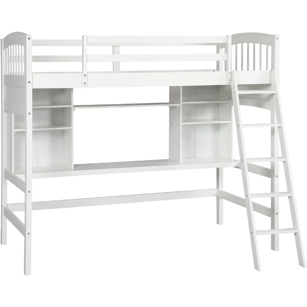 white twin size solid wood loft bed with desk and shelves - bedroom furniture by harper & bright designs