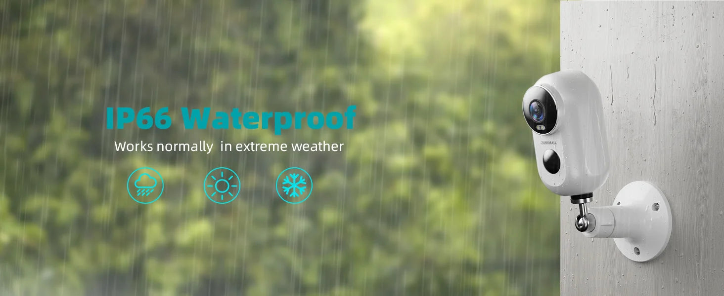 Outdoor cameras for home security designed with IP66 waterproof materials, the standard operating temperature of -4°F to 120°F (-20°C to 50°C ) can show excellent performance.