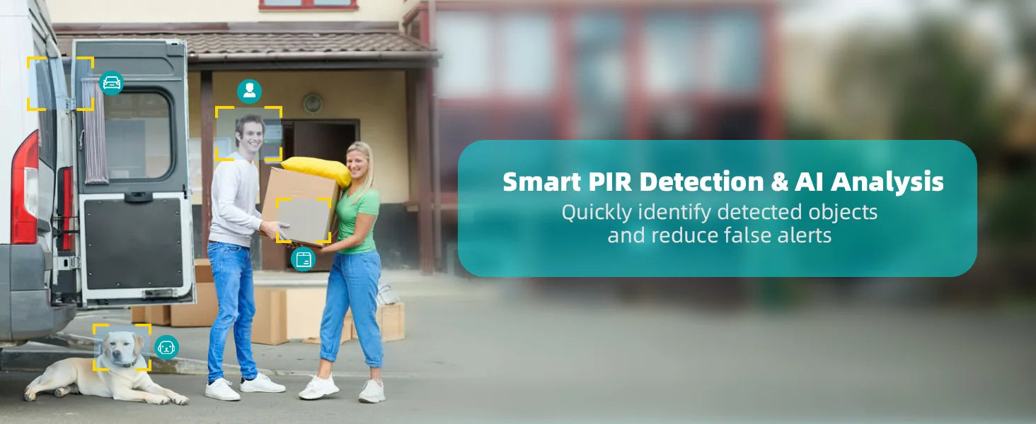 The 2.4G WiFi camera outdoor wireless uses AI analysis to identify people, pets, vehicles, and packages. support customize up to 6 detection areas for better accuracy and fewer false alarms. Quickly activate the siren to deter intruders within 1 second. Compatible with Alexa for a seamless smart home experience